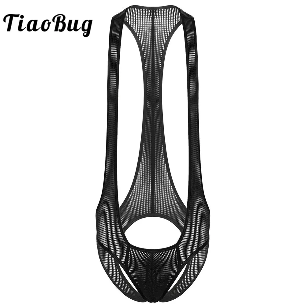 Tag : Men Lingerie Sheer Mesh Solid Color Racerback Bulge Pouch Jockstrap Mankini Underwear Nightwear