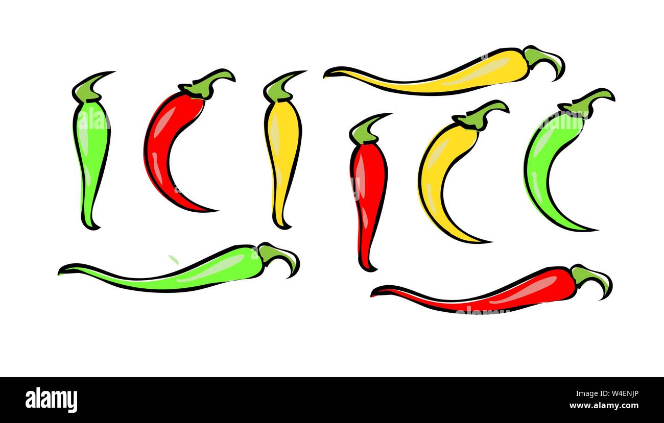 Tag : Mexican Jalapeno Hot Chili Pepper Vector Icon On White Background Colors Hot Chili Peppers Set