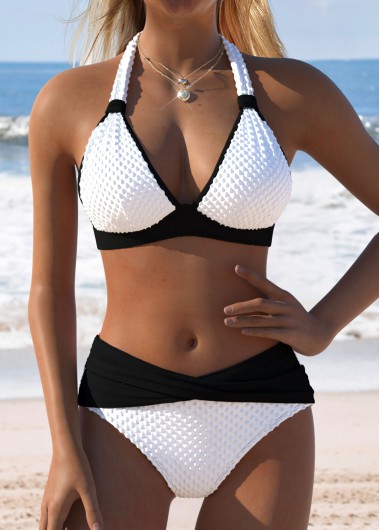 Mid Waisted Patchwork White Bikini Set Modlily USD 34 98 is a popular picture for sexy and hot.