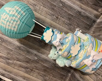 Tag : Mint Hot Air Balloon Diaper Cake Boy Gender Neutral Up Up And Away Adventure Awaits Diaper Cake