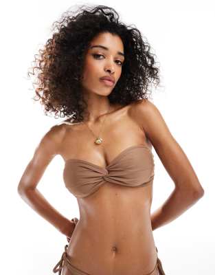 Tag : Miss Selfridge Mix And Match Twist Bandeau Bikini Top In Mocha ASOS