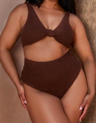 Tag : Moda Minx Curve X Bernadette Afia Scrunch High Waist Bikini Bottom In Coffee ASOS