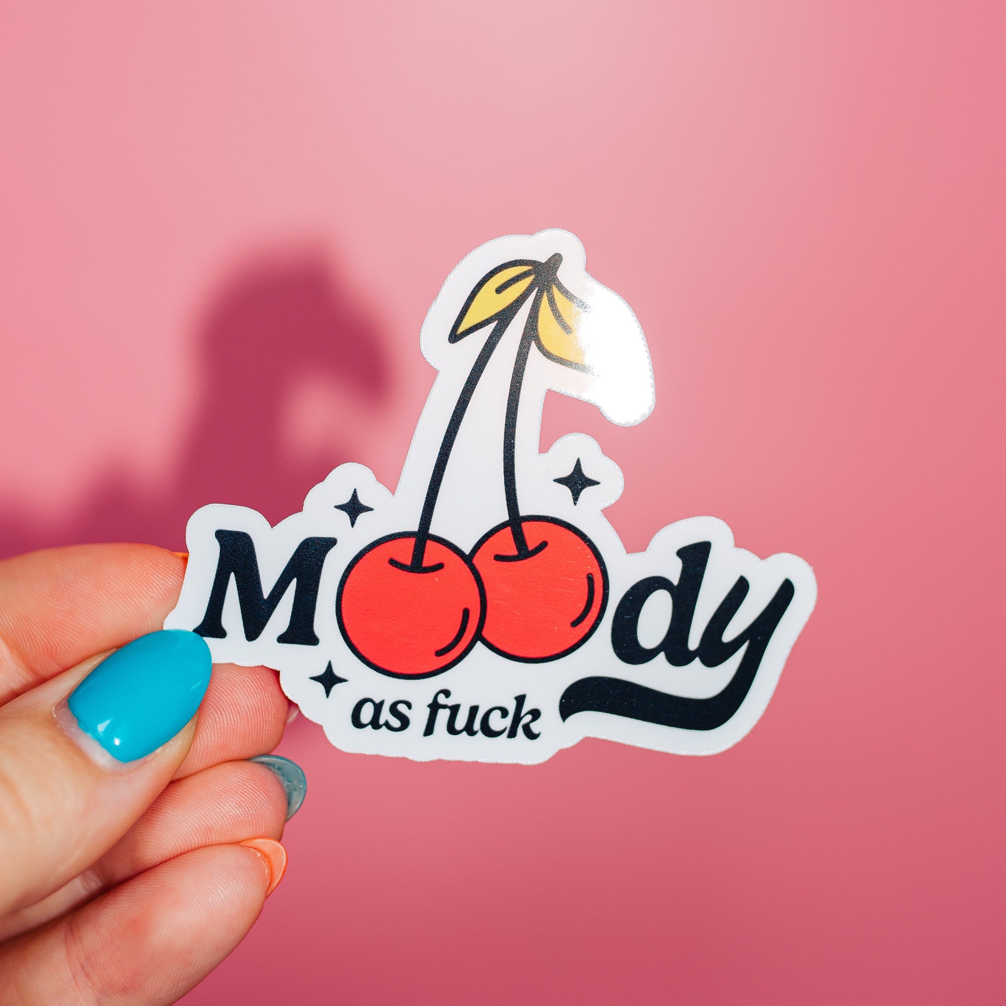 Moody As Fuck Sticker Cute Cherries Y2K Aesthetic Adult Dark Humor Millennial 90s Throwback is a popular picture for sexy and hot.