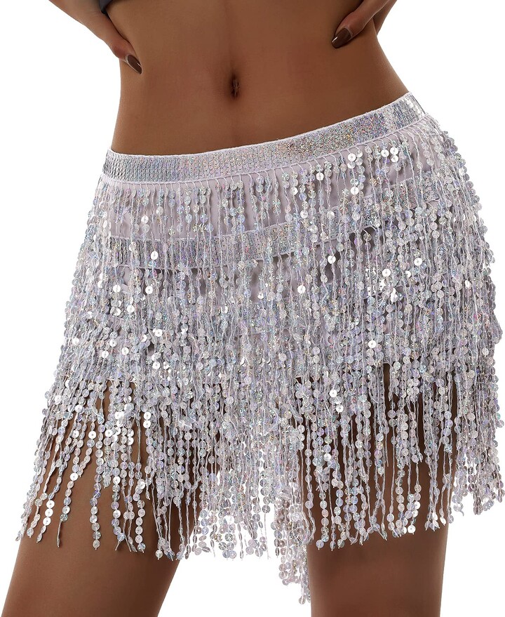 Mosiolya Women S Super Sexy Sequins Tassels Skirt Hot Girl High Waist Shiny Loose Mini Skirt