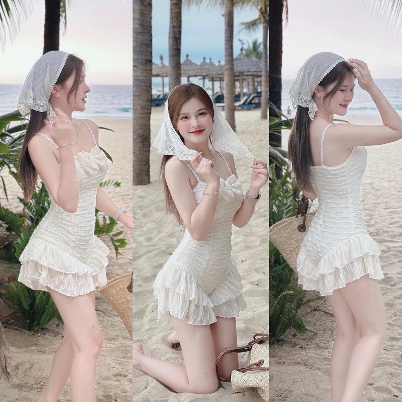 Tag : Ms931 Jumpsuit One Piece Beach Swimsuit With Cute Head Scarf 2 String WHITE Bow Bikini With