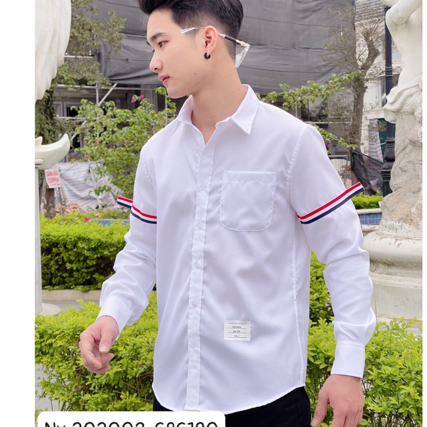Related pictures for Mua Áo Sơ Mi Thom 2 tay chạy sọc ngang BIGOMALL Áo sơ mi trắng nam nữ unisex sex áo sơ mi quốc