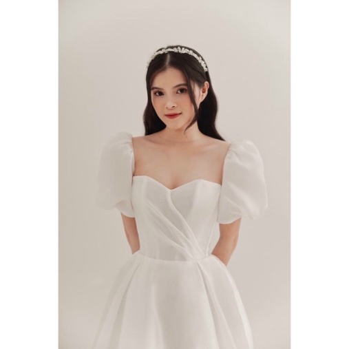 Tag : Mua Quảng Châu Đầm maxi xoè mặc cưới xếp ly ngực 3 tia tay ngắn phồng cổ tròn phối lưới nude ALV
