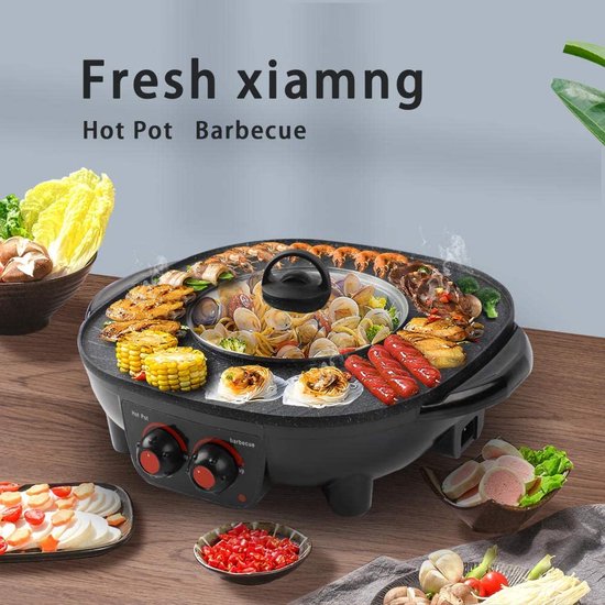 Tag : Multifunctionele BBQ Hot Pot Double Pot Elektrische Grill Elektrische Bakplaat Bol