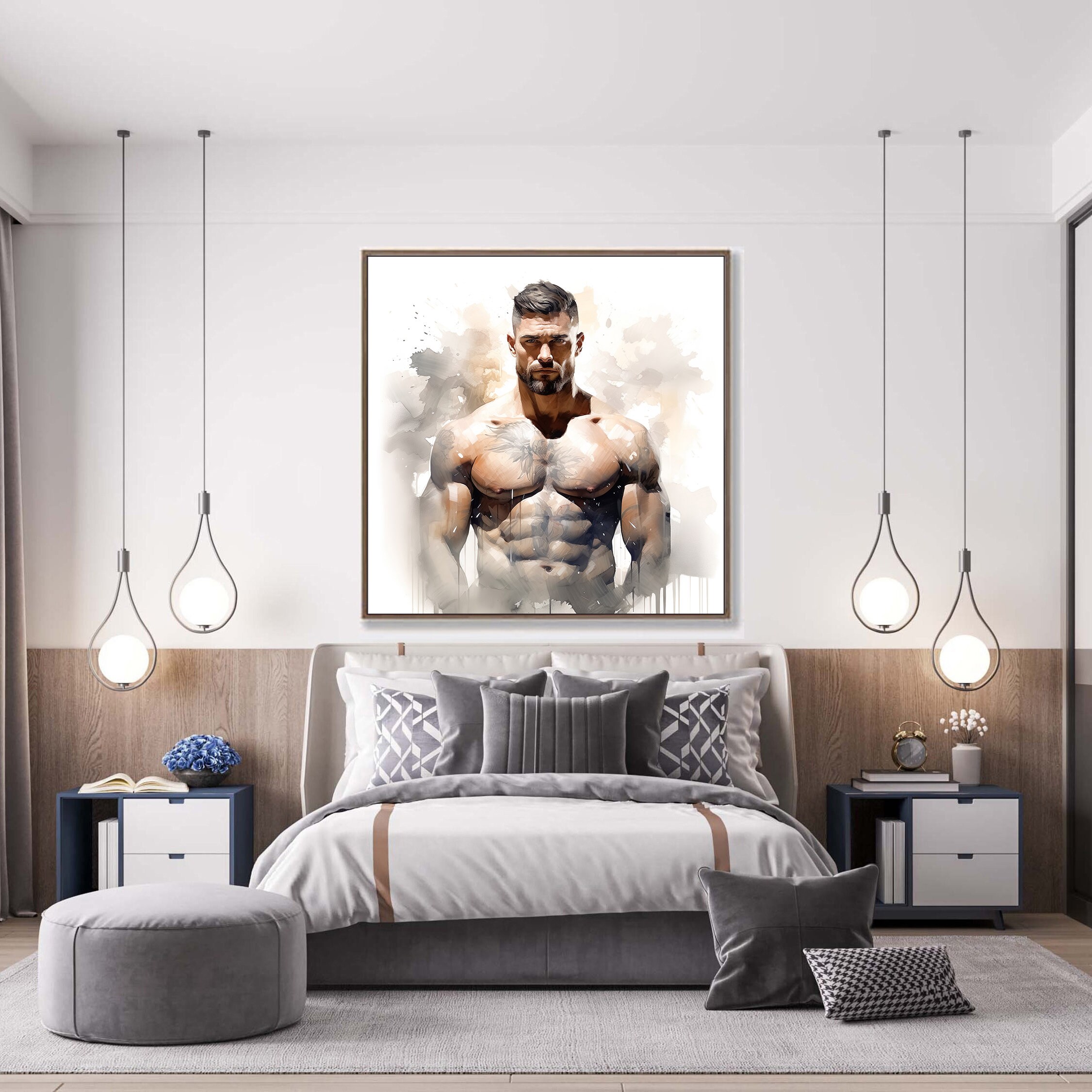 Tag : Muscle Male Nude Portrait Digital Gay Art AI Generated Male Erotic Poster Wall Poster Digital