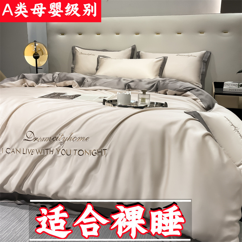 Tag : Mya Grade Light Luxury Ice Silk Four Piece Set Silky Nude Sleeping Summer Cool Quilt Cover Bed
