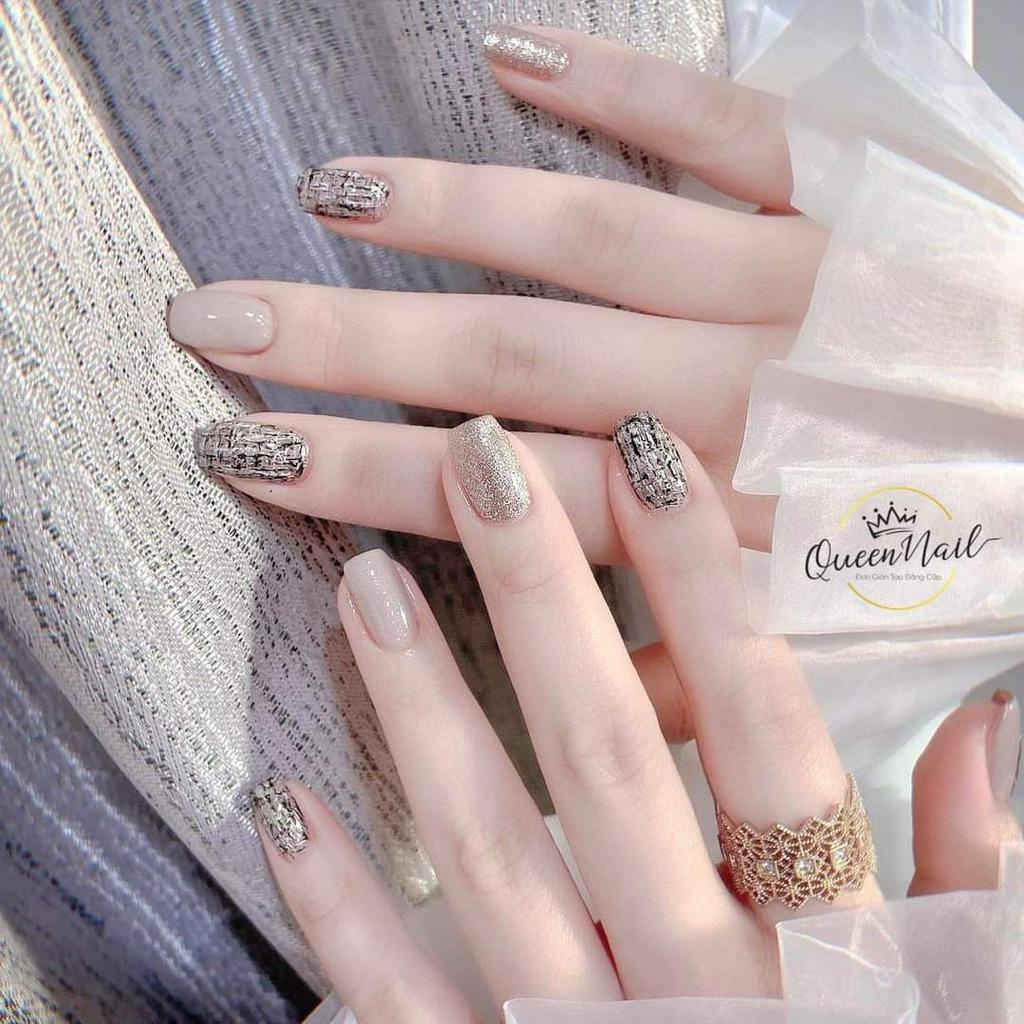 Nailbox móng úp thiết kế màu nude kẻ dạ trắng đen tùy chọn màu phối vào Shopee Việt Nam