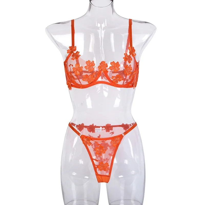 New Arrival 3d Flower See Through Embroidery Two Pieces Sexy Lingerie Hot Bra Sets Honeymoon