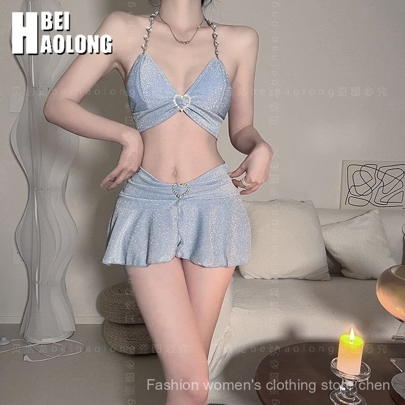 Tag : New Style Blue Swimsuit Women Cover Belly Small Breast Sexy Bikini Two Piece Swimsuit