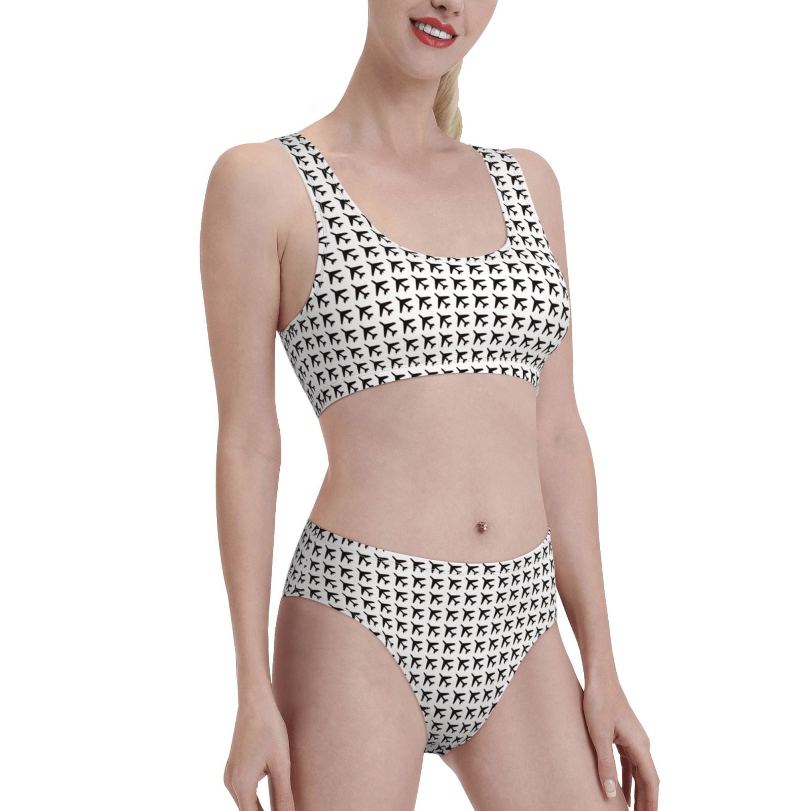 Noikeo Airplane Pattern Bikini Set For Women Two Piece Swimsuits Low Rise Bathing Suits