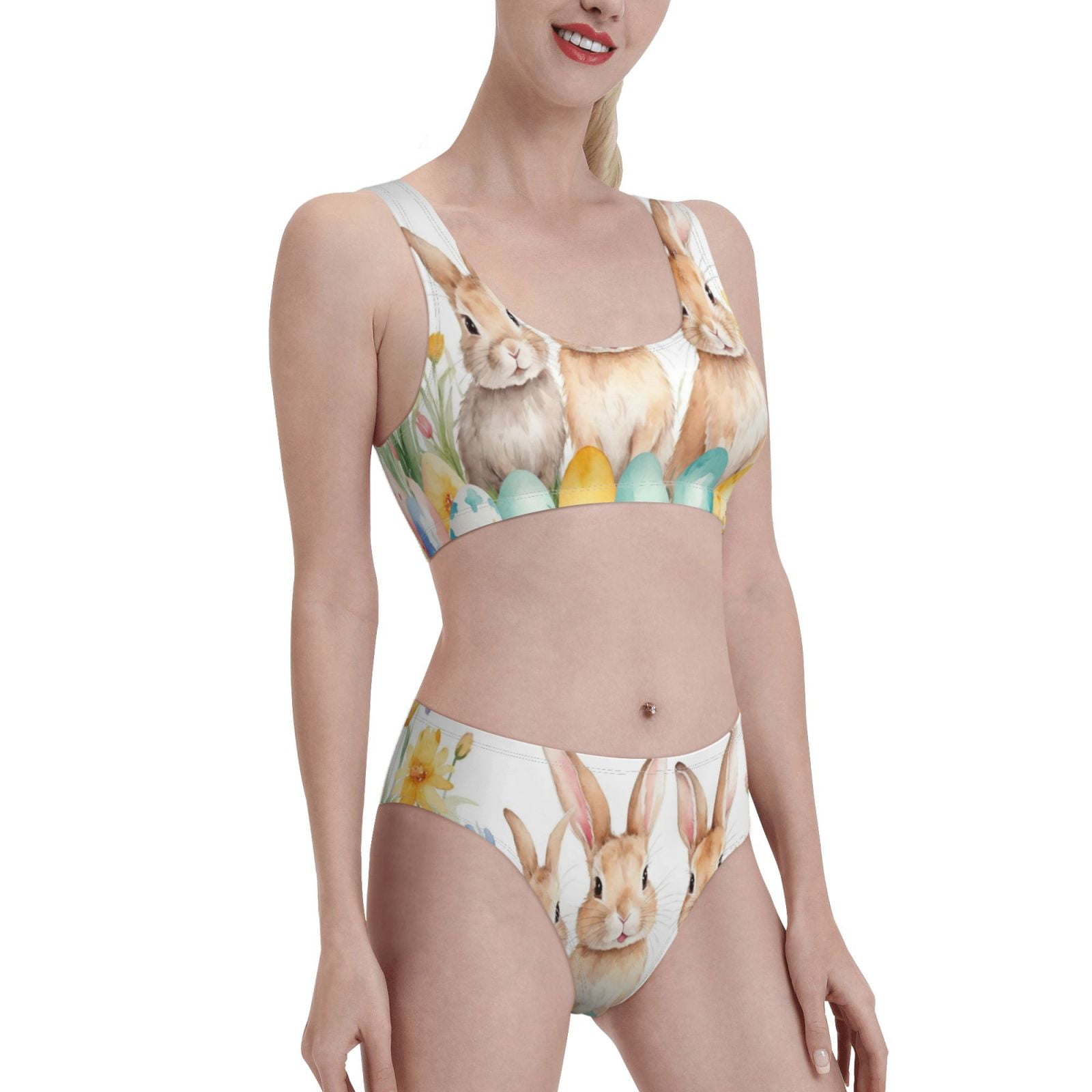 Noikeo Happy Easter Pattern Bikini Set For Women Two Piece Swimsuits Low Rise Bathing Suits 114296