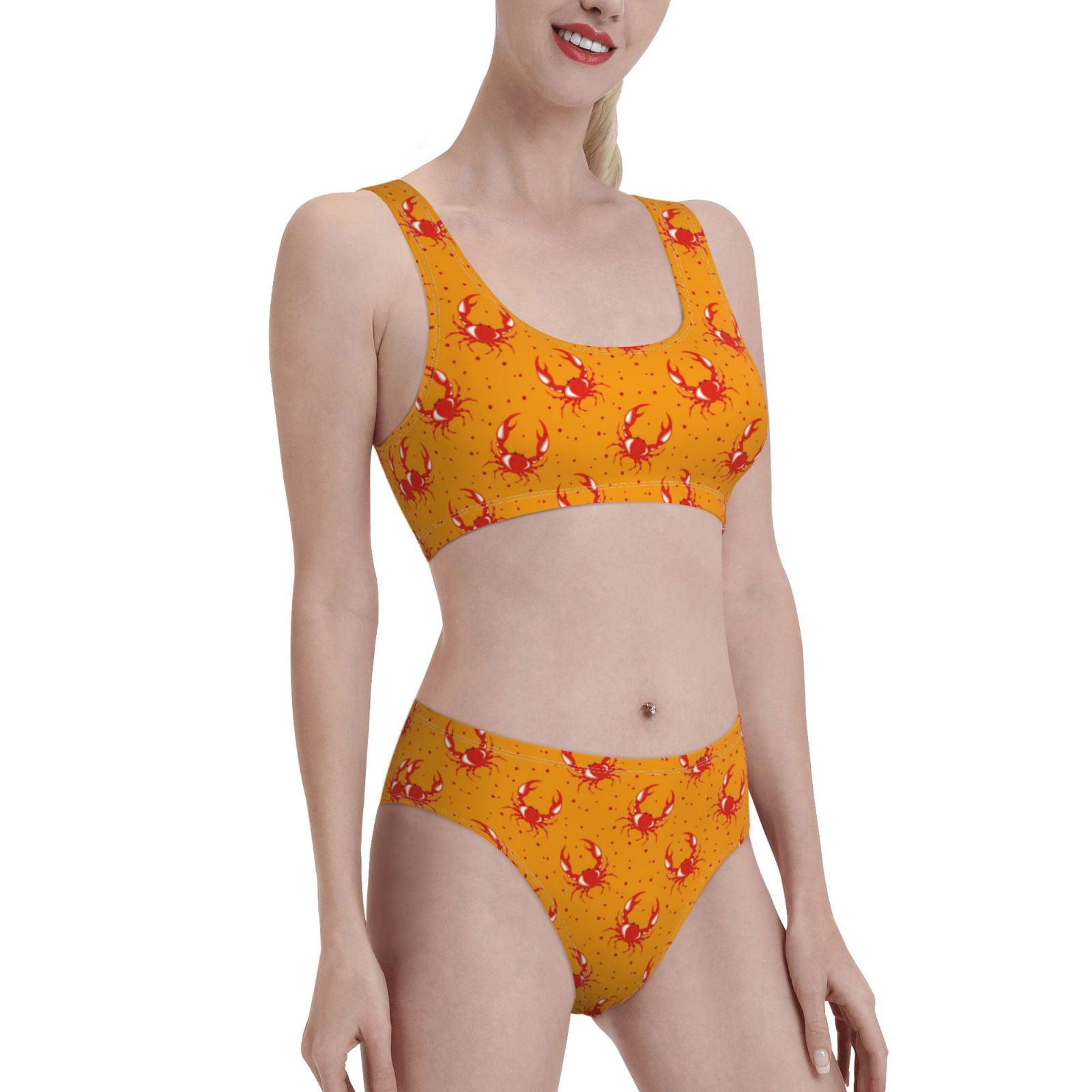 Noikeo Red Crab Pattern Bikini Set For Women Two Piece Swimsuits Low Rise Bathing Suits is a popular picture for sexy and hot.