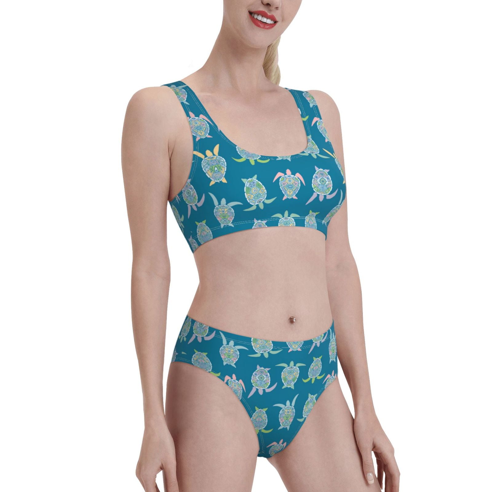 Noikeo Sea Turtle Pattern Bikini Set For Women Two Piece Swimsuits Low Rise Bathing Suits 83838