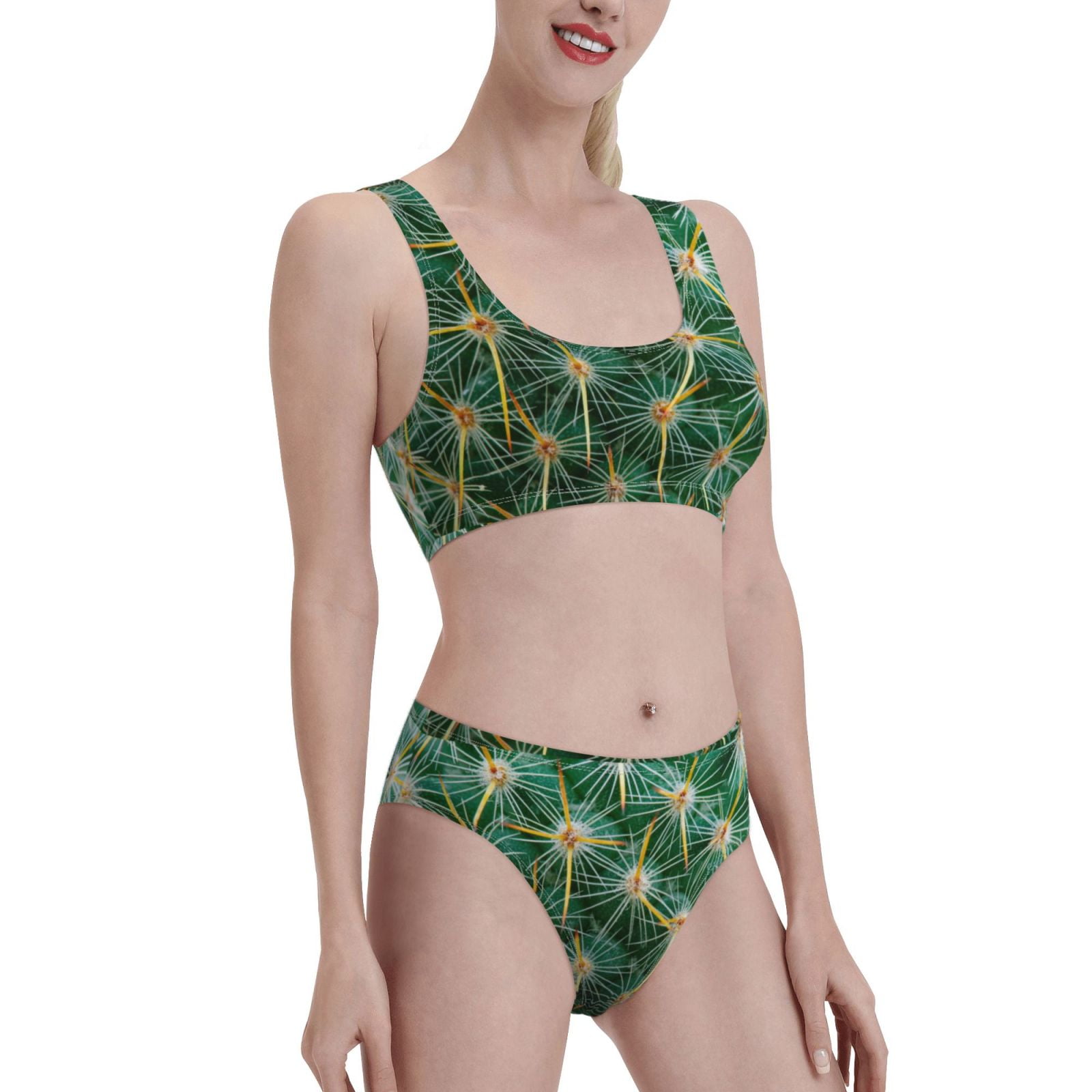 Noikeo Thorns Of Macro Cactus Pattern Bikini Set For Women Two Piece Swimsuits Low Rise Bathing