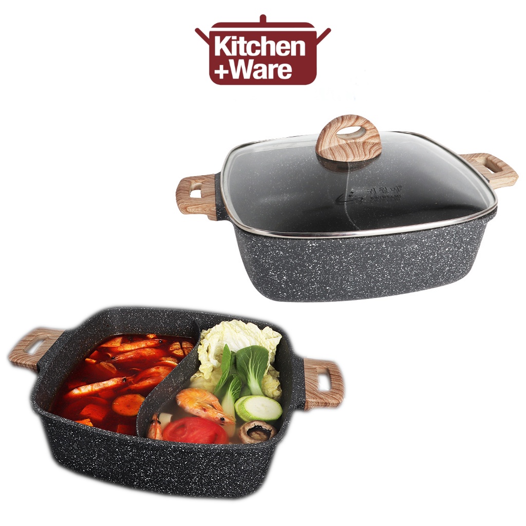 Tag : Non Stick Yuanyang 2 Sided Square Steamboat 4 5L With Glass Lid Stone Hot Pot Yuan Yang Pot