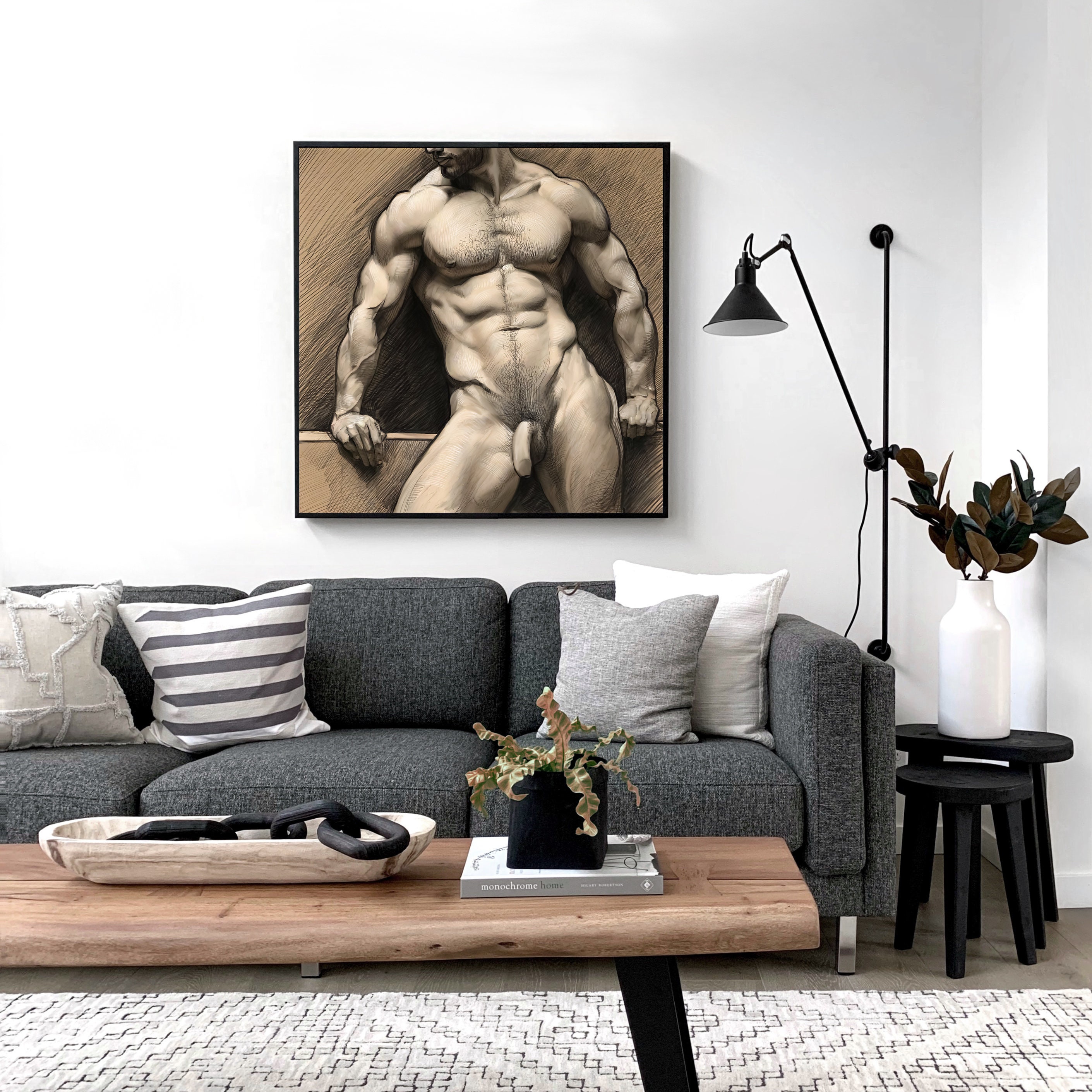 Nude Muscle Male Torso Gay Art AI Generated Realistic Digital Drawing Erotic Illustration
