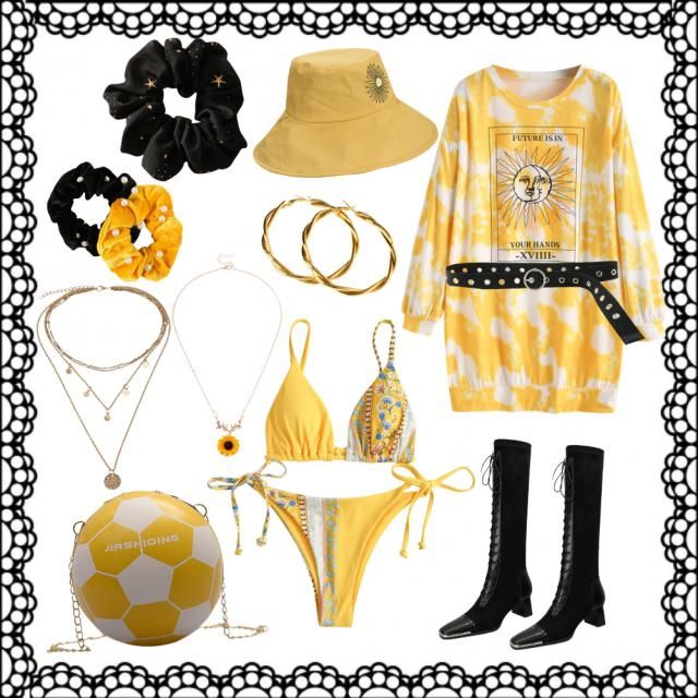 Tag : OFF ZAFUL Ribbed Bohemian Printed String Bikini Swimwear In YELLOW ZAFUL