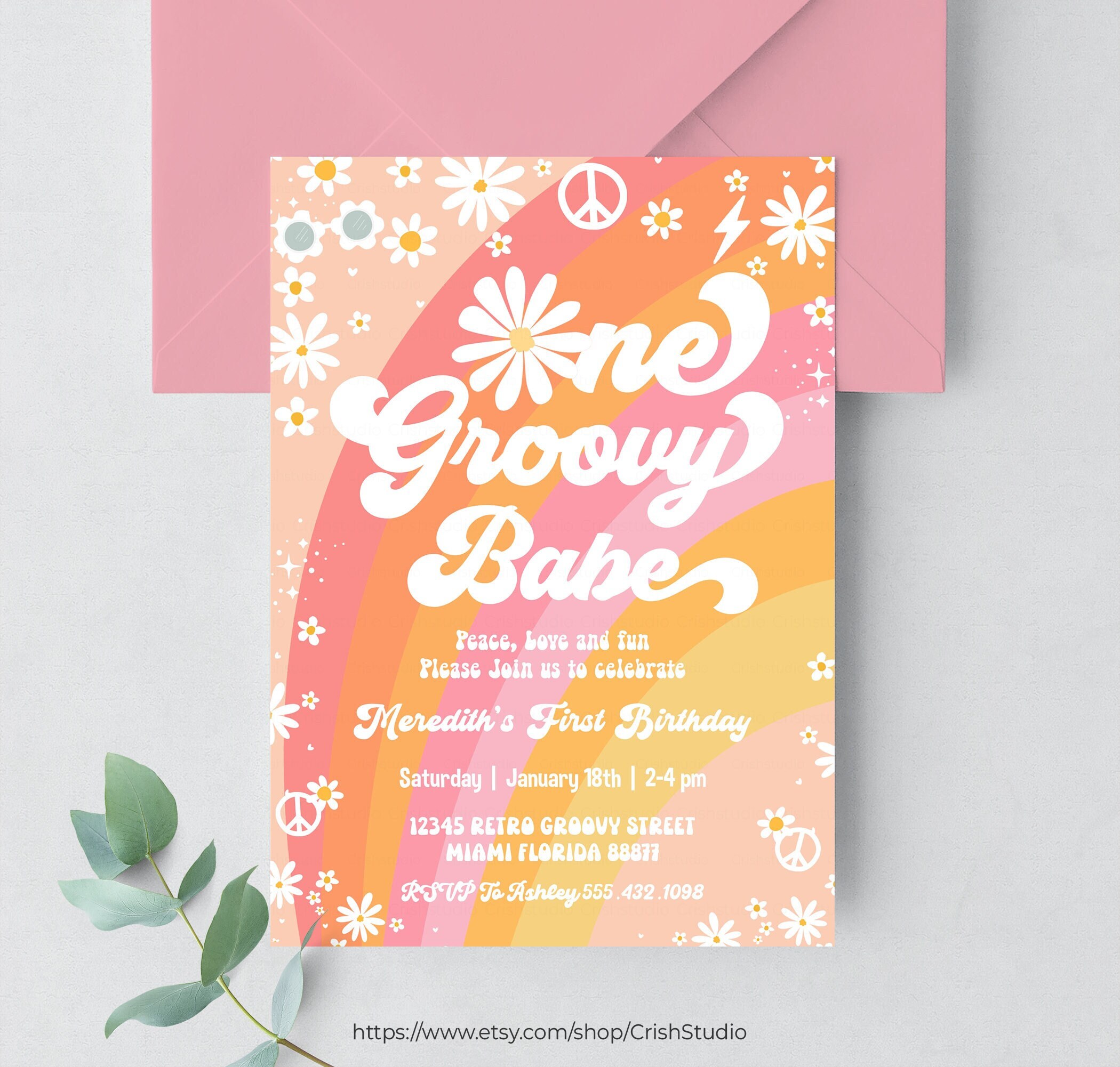 One Groovy Babe Birthday Invitation Hippie Van Editable Groovy One Birthday Groovy Decorations