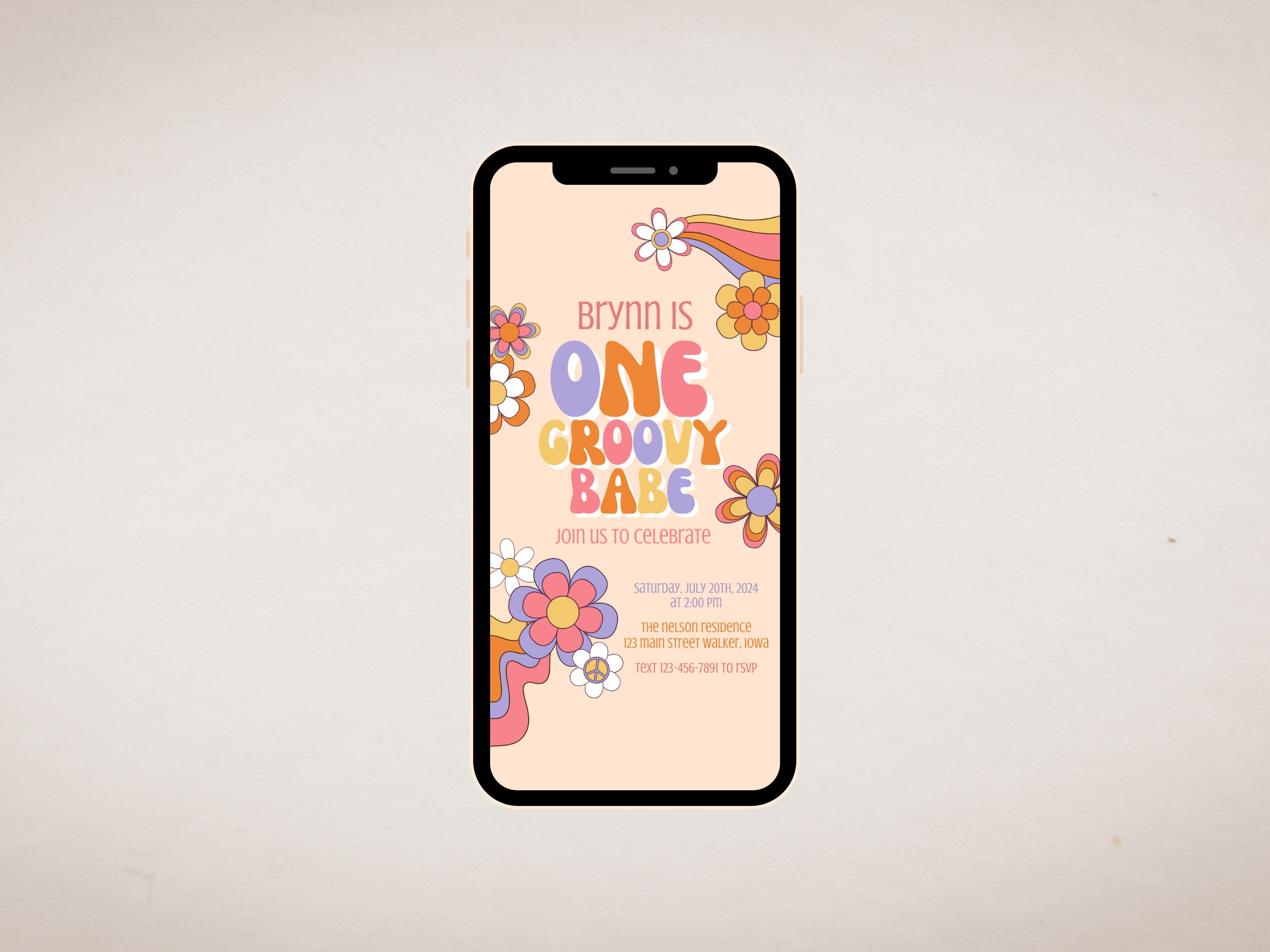 Tag : One Groovy Babe Digital Invitation First Birthday Digital Invitation Template Evite Etsy
