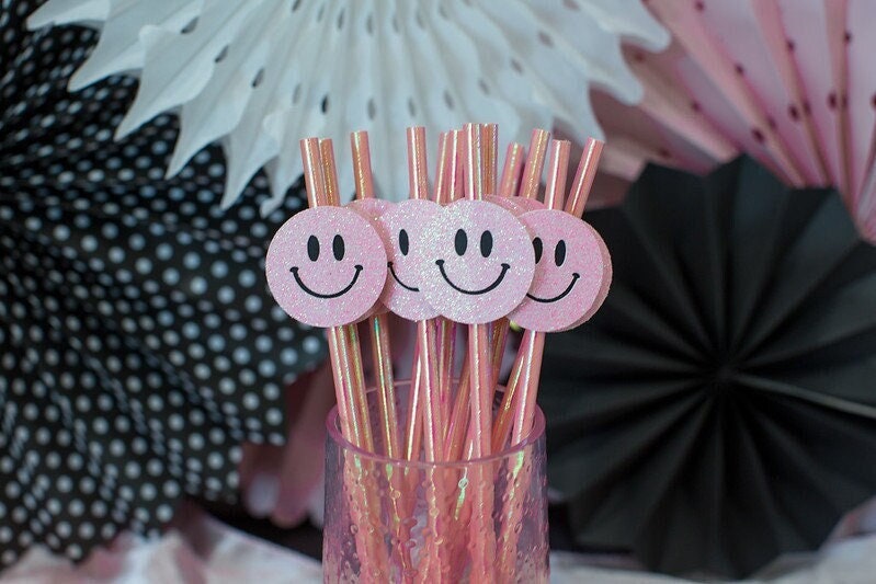 Tag : One Happy Babe Pink Smiley Face Party Decor Retro Party Decor One Happy Babe St Birthday