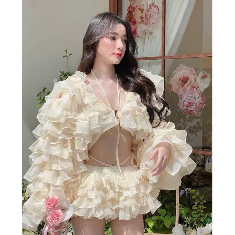 Tag : P178 Set áo crop nude voan tầng bèo tay dài kèm bra phối chân váy xòe nhiều tầng Shopee Việt Nam