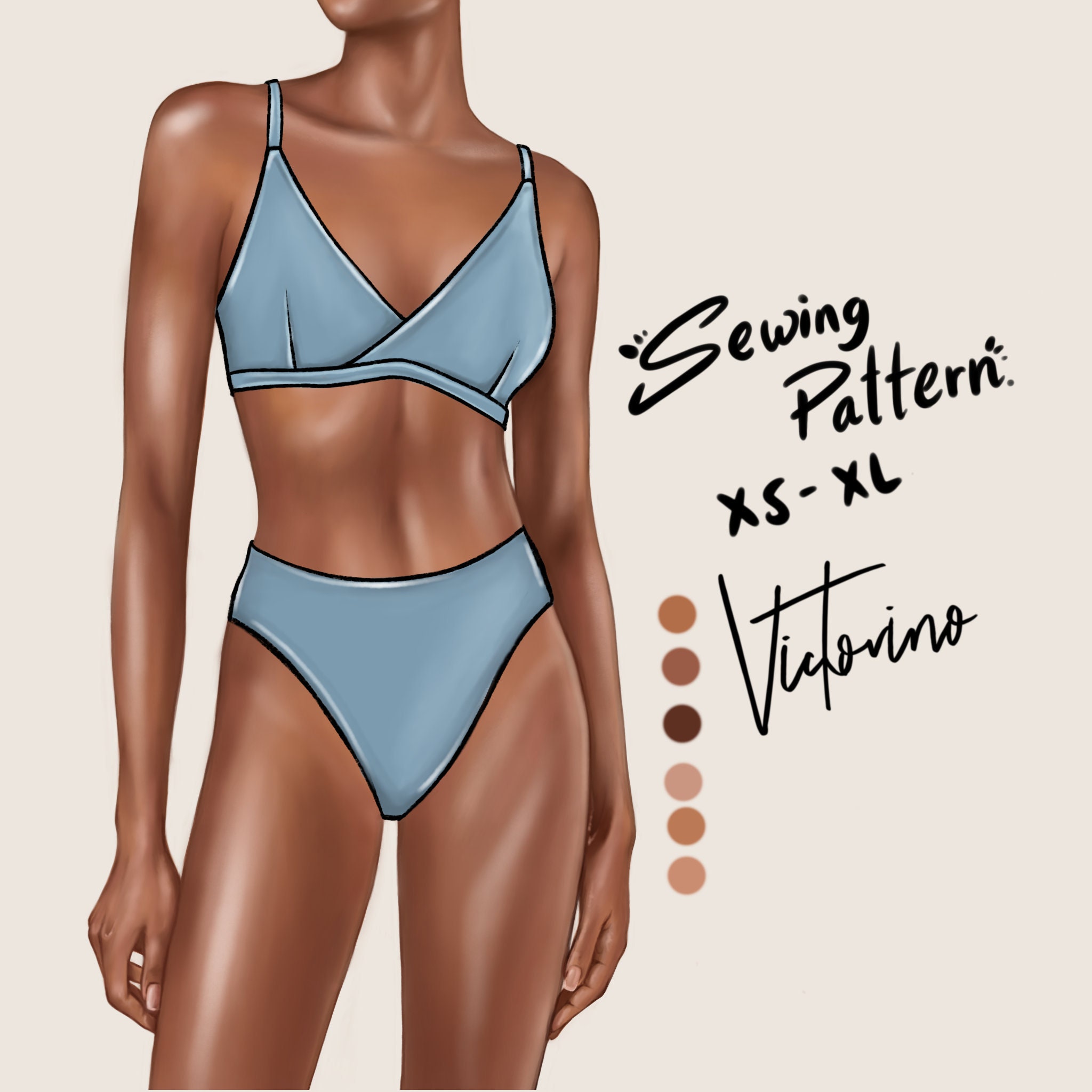 Tag : PDF Sewing Pattern Bikini Set Swimsuit Top And High Cut Panty Mid Leg Swimsuit Top And High
