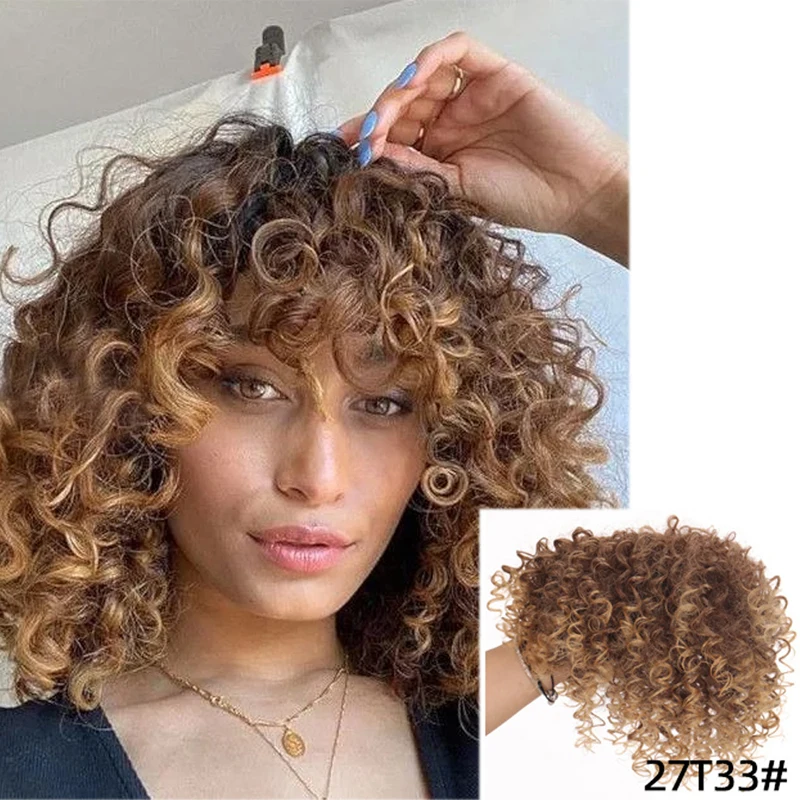 Tag : Perruques Afro Kinky Curly Avec Frange Postiche Synth Tique Blonde Remplacement De La T Te Nuit