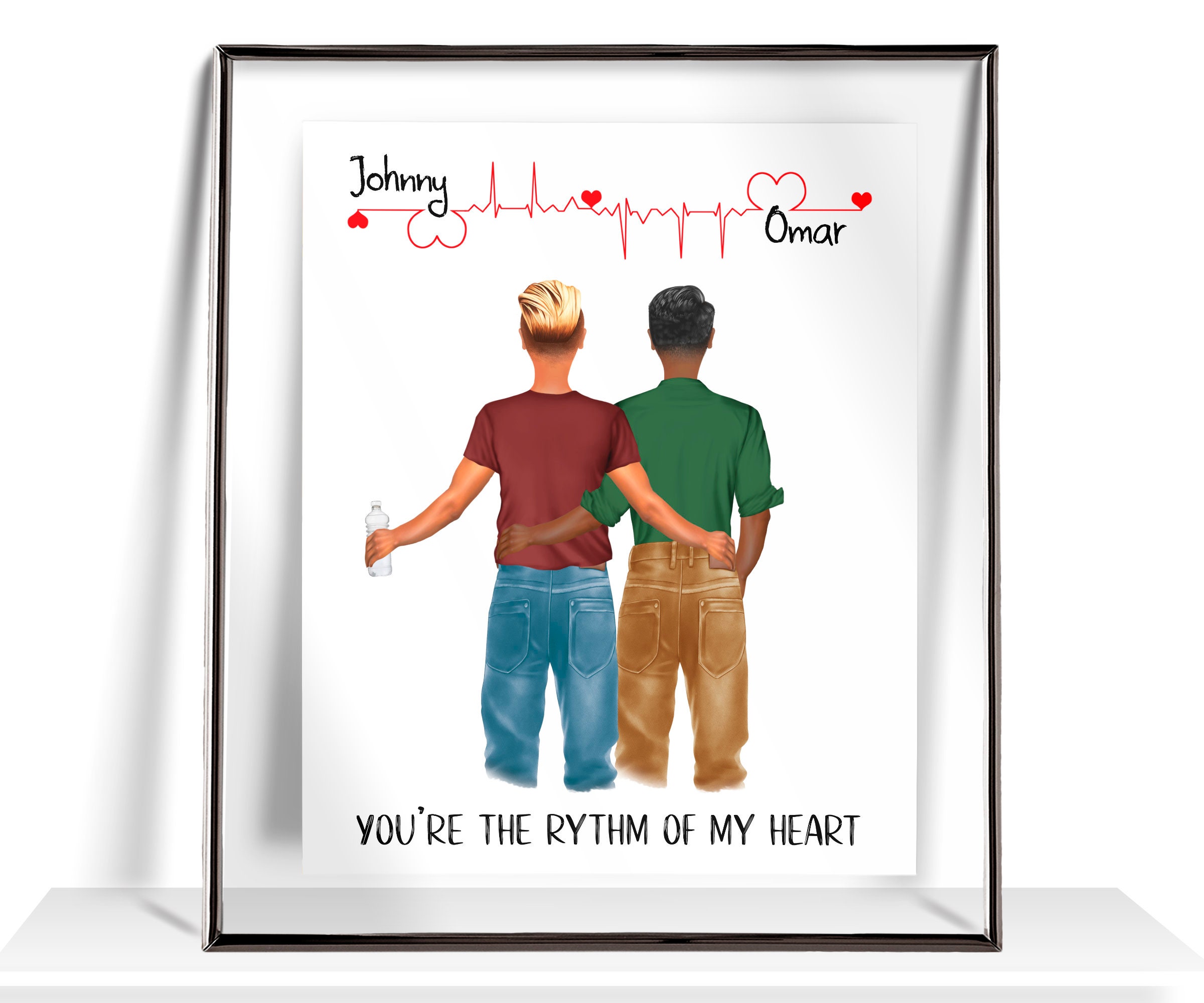 Tag : Personalised Same Sex Male Couple Portrait Custom Gay Couple Gifts Boyfriend Print Valentines