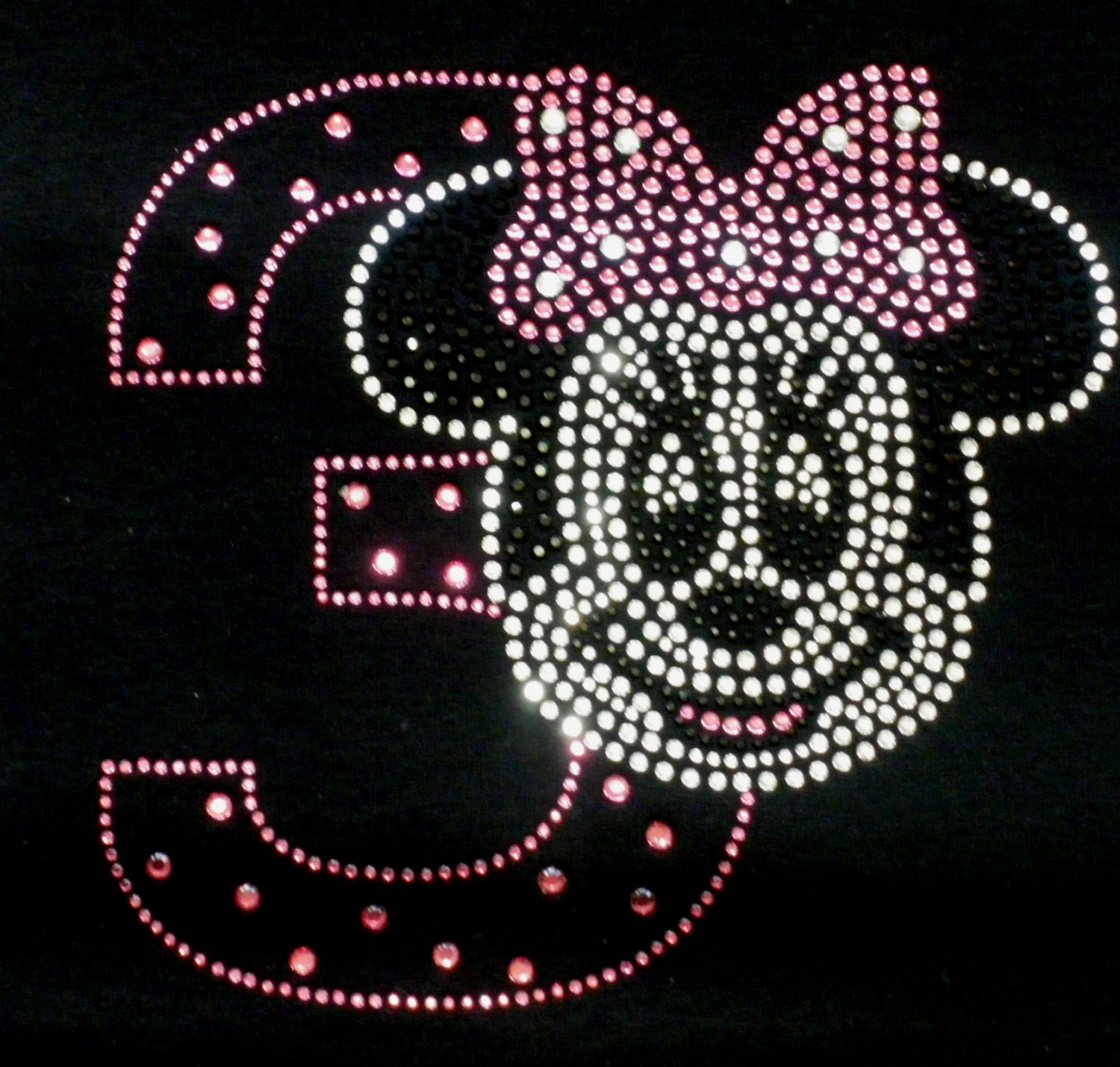 Personalized Disney Font Minnie Mouse With Hot Pink Polka Dot Bow Custom Iron On Rhinestone is a popular picture for sexy and hot.