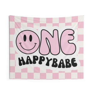 Tag : Pink One Happy Babe Banner Pink Smile Backdrop Pink Smiley Face Decor One Happy Girl Sign