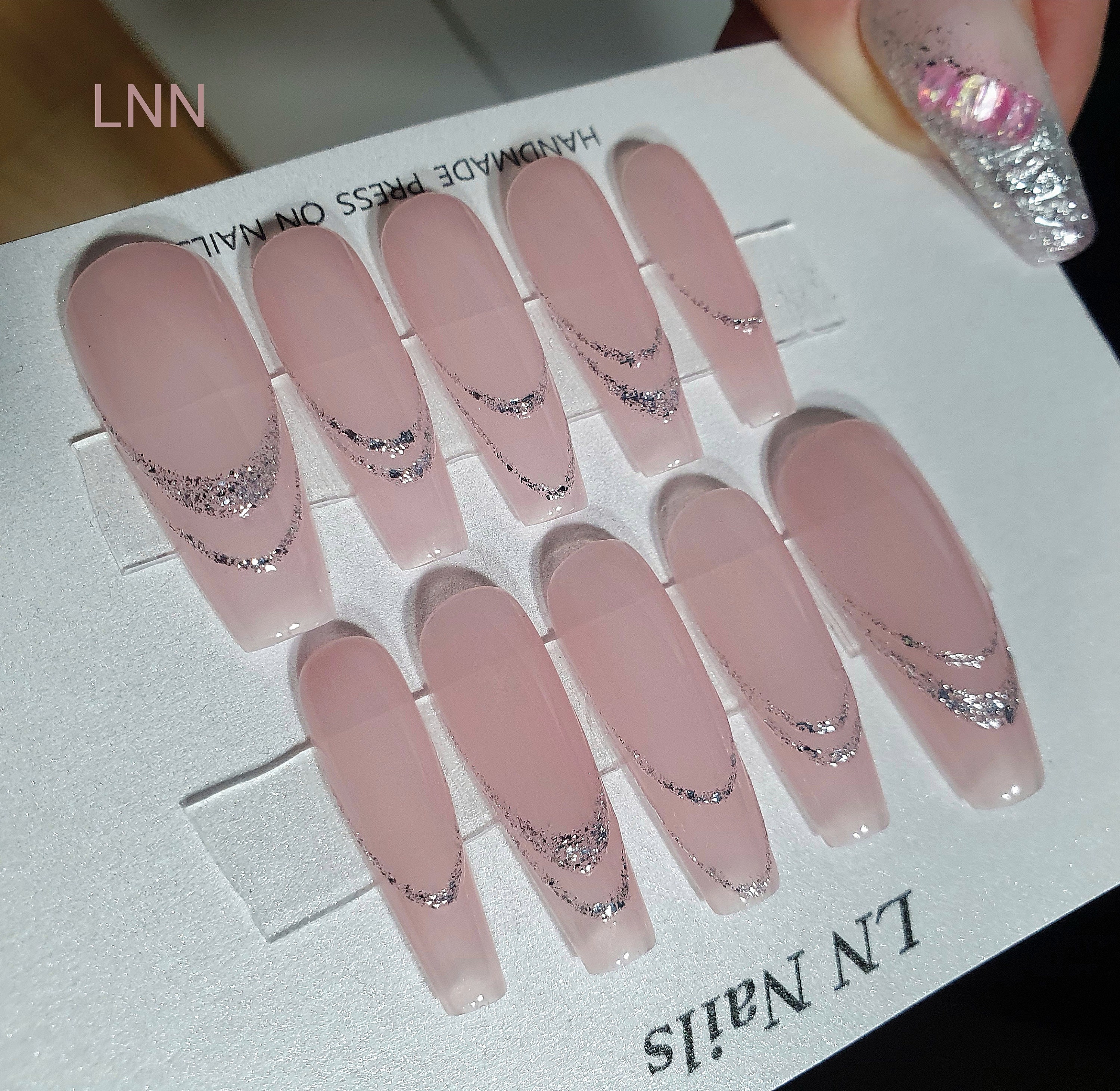 Tag : Pink Press On Nails Long Coffin Nails Glitter Sparkle Press On Nails Nude Nails Glue On Fake