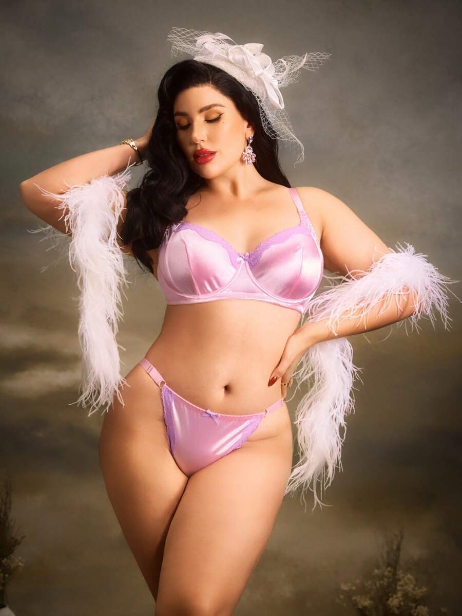 PinupGlam Plus Size Elegant Lace Trim Lingerie Set SHEIN USA is a popular picture for sexy and hot.