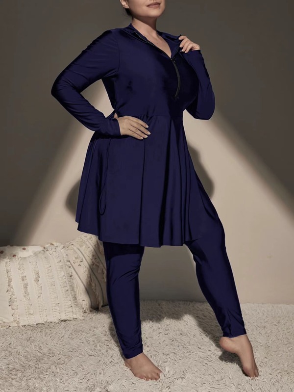 Plus Half Zip Hooded Drawstring Full Body Bikini Swimsuit SHEIN USA is a popular picture for sexy and hot.