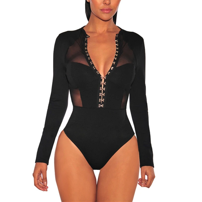 Tag : Plus Size Bodysuit For Women Long Sleeve Mesh Jumpsuit Sexy Splice Transparent Lingerie O Neck