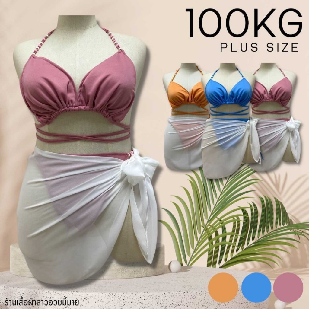 Tag : Plus Size Piece Swimming Set Pastel Beaded Bikini Bra Panty Tie Waist Plump Girl Wrap To