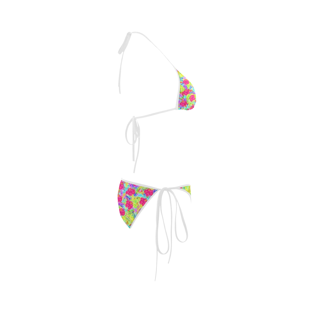 Tag : Pretty Pink Hawaiian Flowers Pattern Custom Bikini Swimsuit ID D