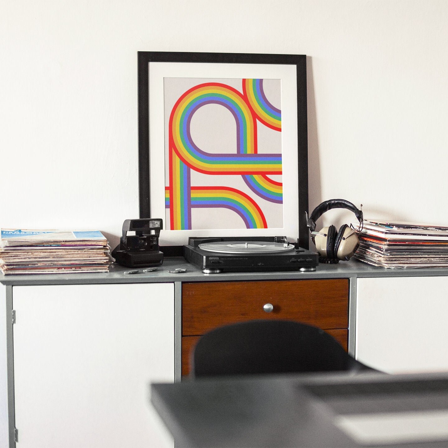 Tag : Pride Rainbow Wall Art Printable Gay Digital Poster Print Gay Pride Flag Retro Bauhaus Print Gay