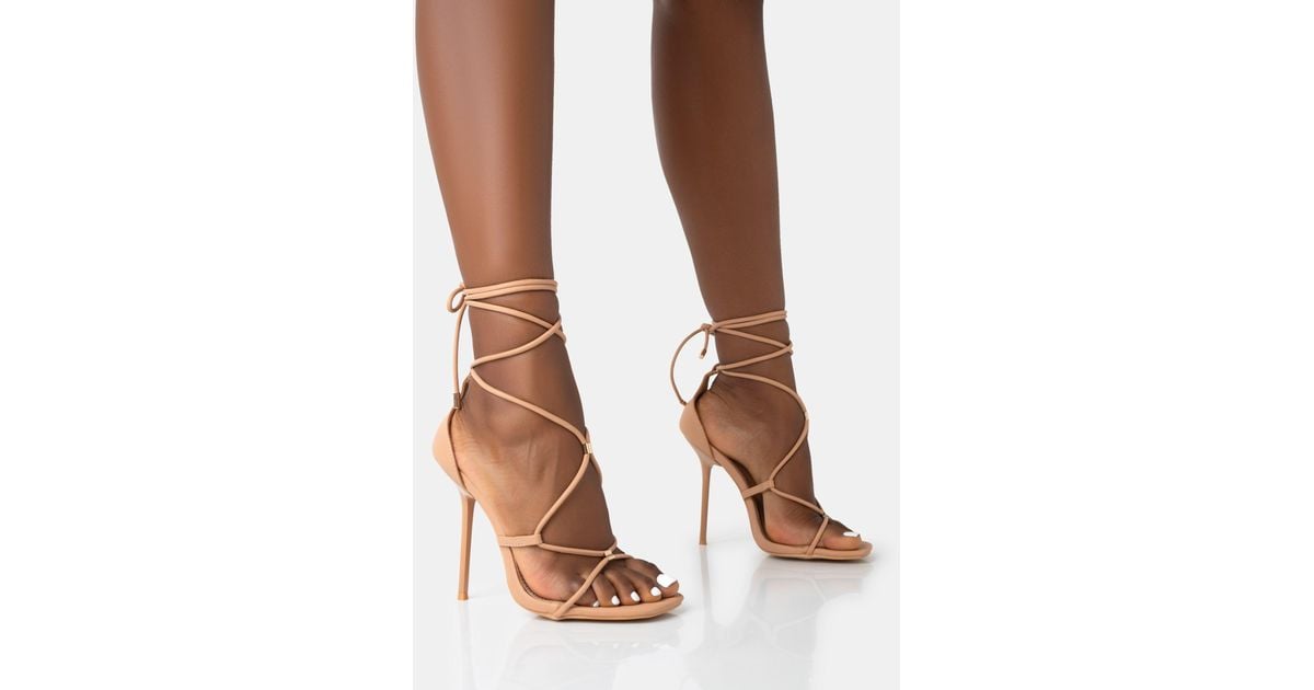 Public Desire Leilani Natural Nude Pu Strappy Lace Up Square Toe Stiletto Heels In Brown Lyst is a popular picture for sexy and hot.