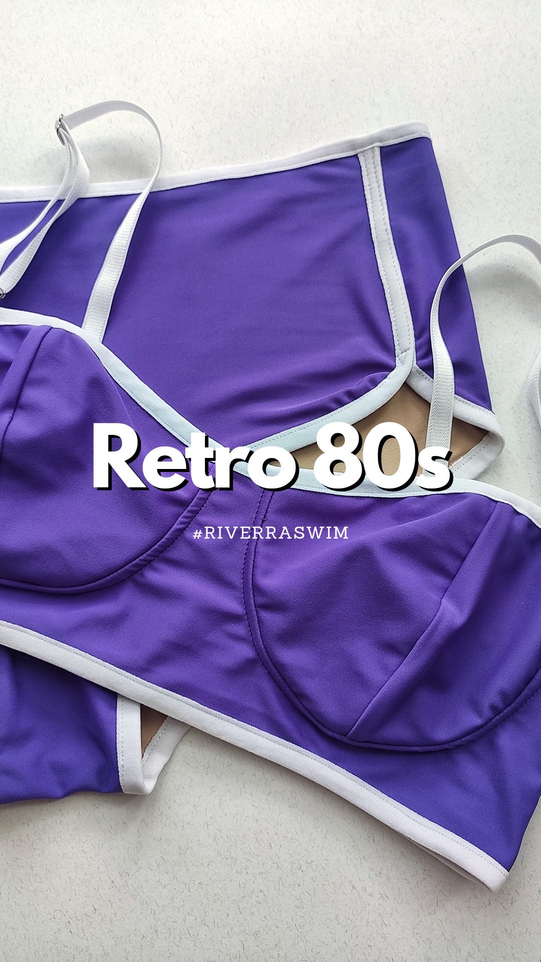 Tag : Purple Pin Up Bikini Set Crop Balconette Top Retro Highwaisted Bottoms S Style Bikini