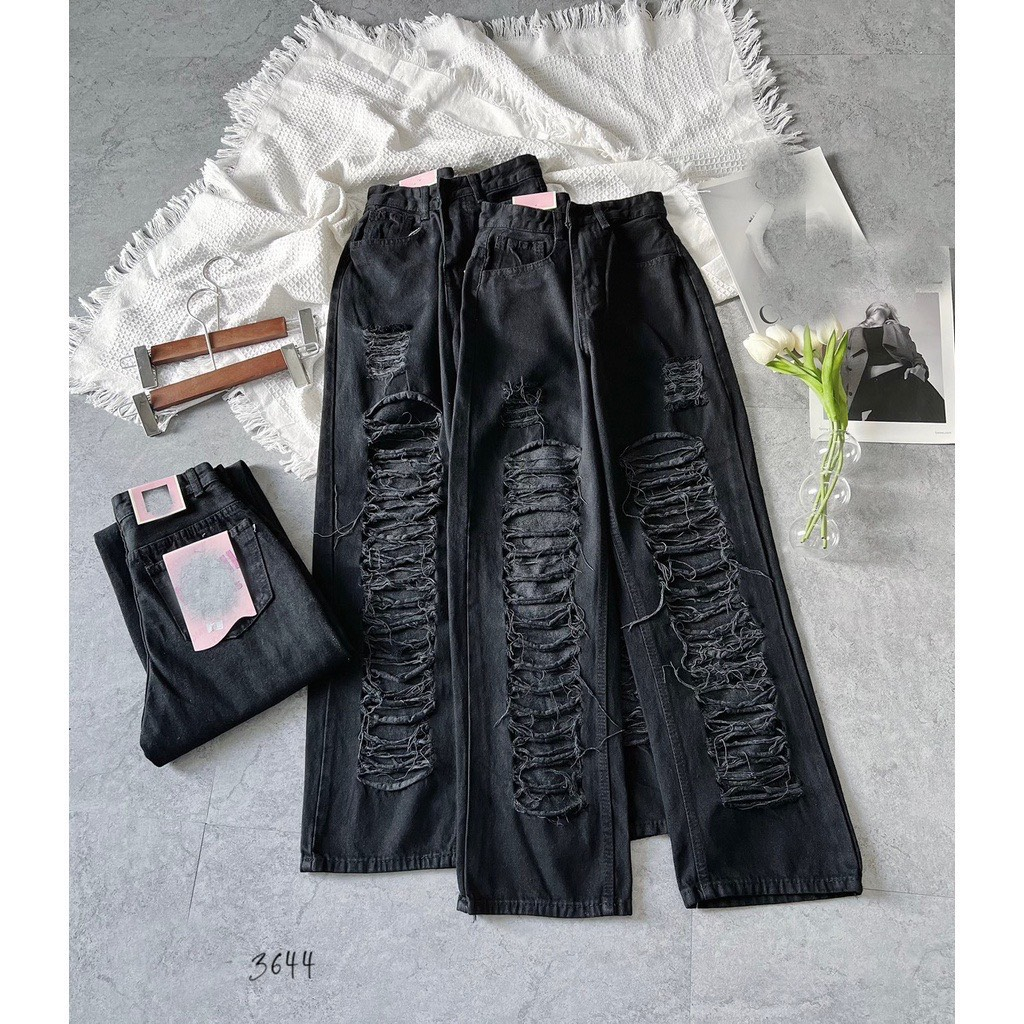 QUẦN JEANS CHẤT BÒ ỐNG SUÔNG RỘNG RÁCH LOANG 2 MÀU ĐEN CẠP CAO DÀI CHÂN SIÊU TÔN DÁNG HOT TREND is a popular picture for sexy and hot.