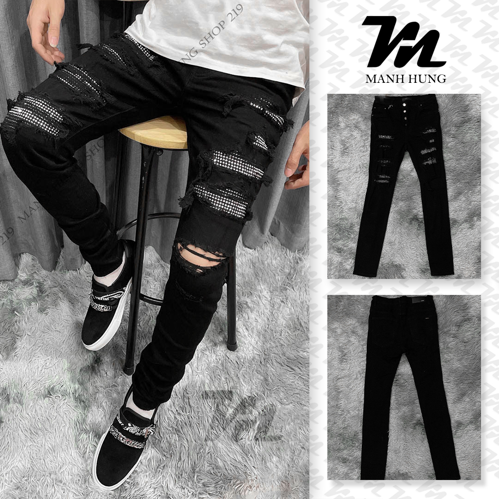 Quần Jean Nam Đen Đính Đá 4 Cúc A mi ri Vintage Quần Bò Nam Đen Vladak hoạ tiết đính đá hot