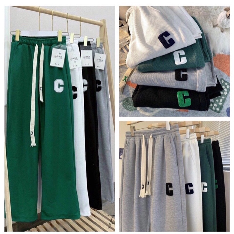Quần SUÔNG TỔ ONG THÊU CHỮ C có dây rút thật điều chỉnh siêu hot trend freesize kg Shopee