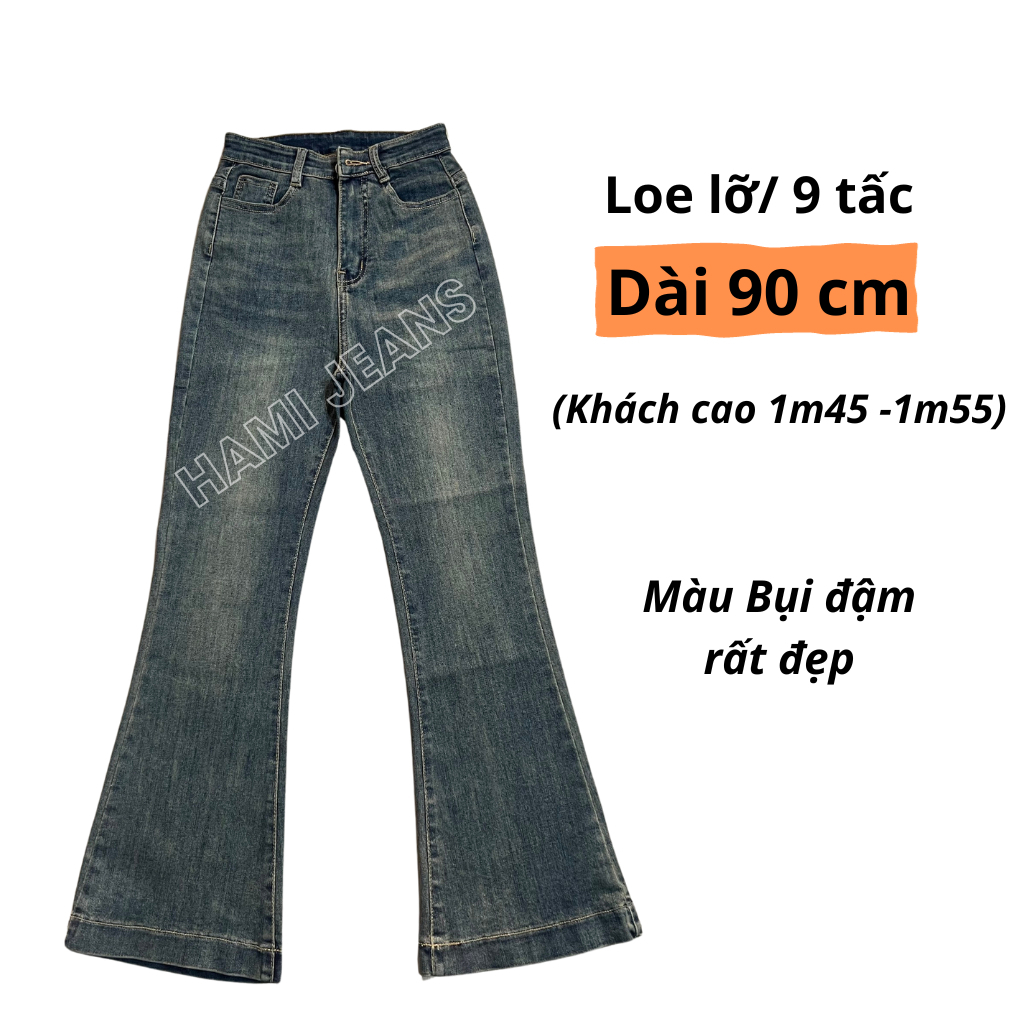 Tag : Quần jean ống loe cạp cao co giãn dài 90 cm cho người 1m45 1m55 màu bụi retro siêu hot Shopee