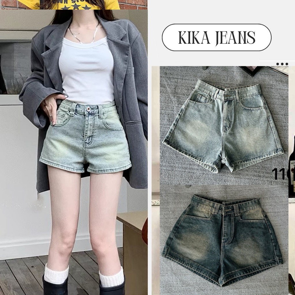 Related pictures for Quần short jean nữ trơn lưng cao 55kg 85kg kiểu quần sọt bò trơn tone màu bụi hot thời trang