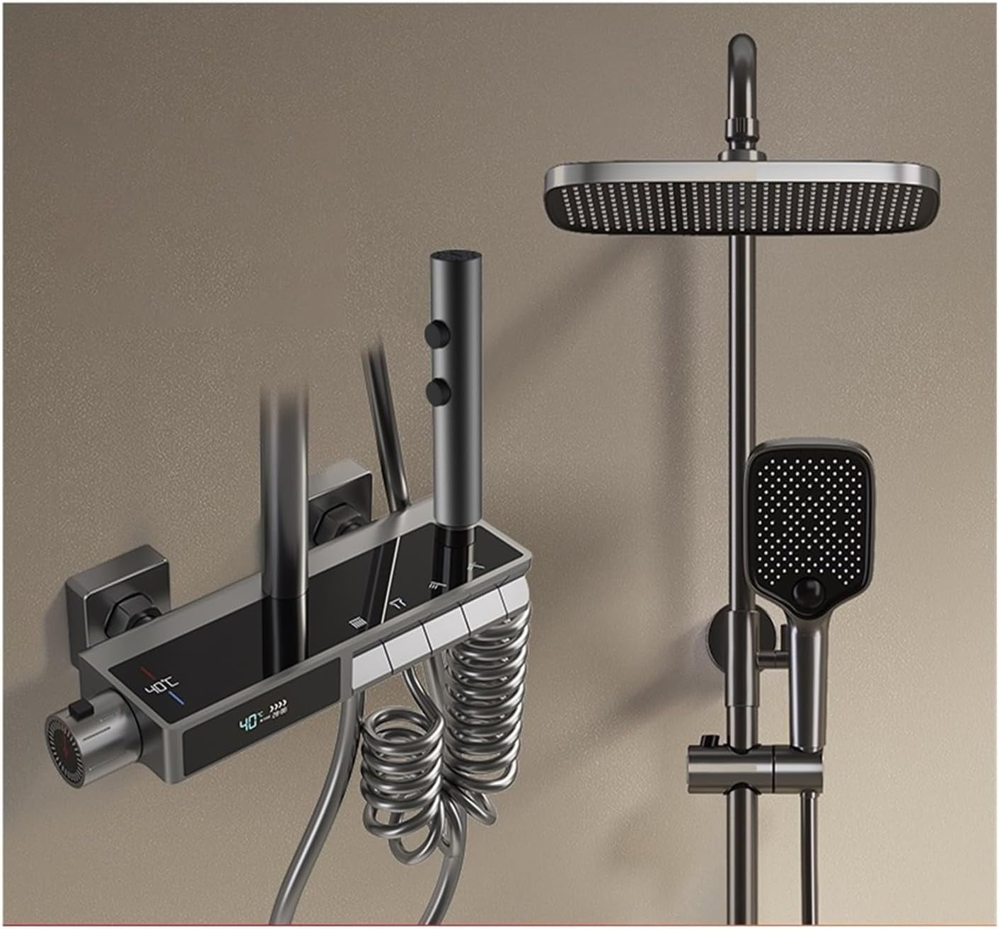 Rainfall Shower System LED Digital Shower Set Bathroom Hot Cold Mixer Shower System Wall Mount