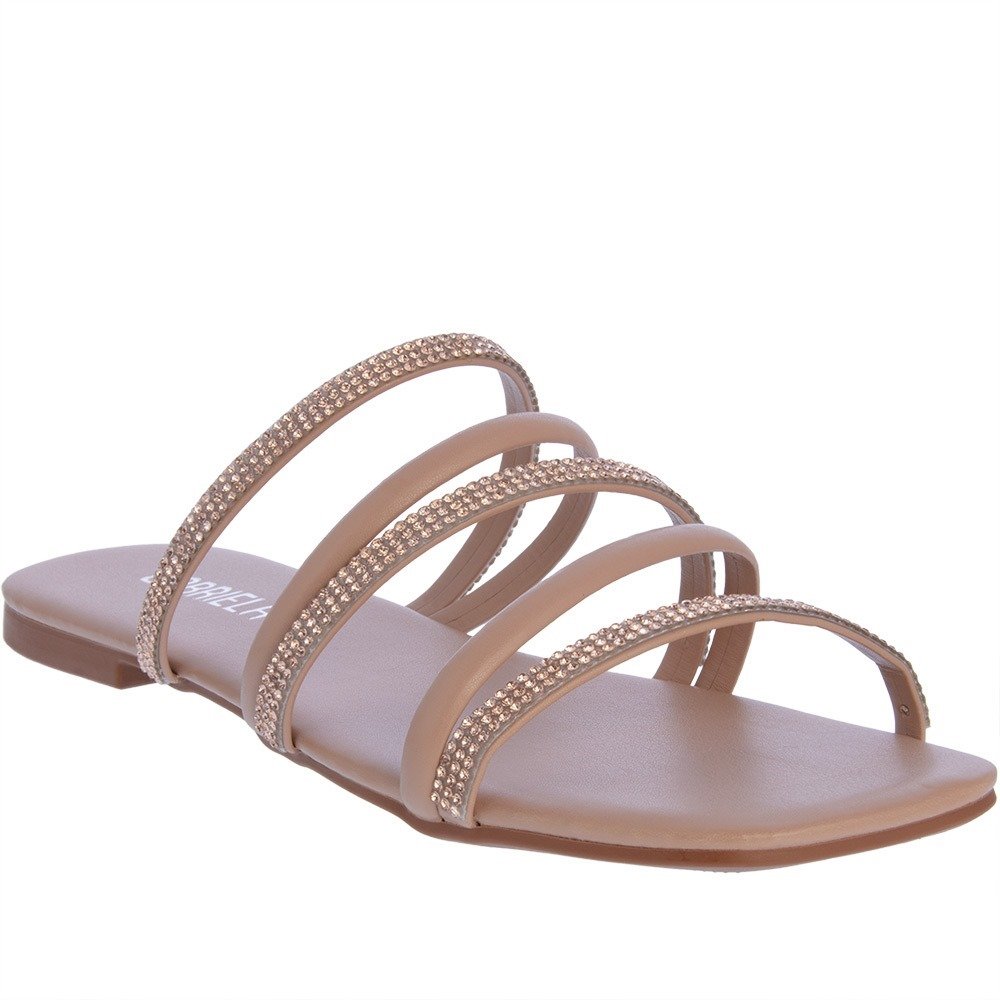 Rasteira Gabriela Detalhe Tiras Strass Nude Bege 112896